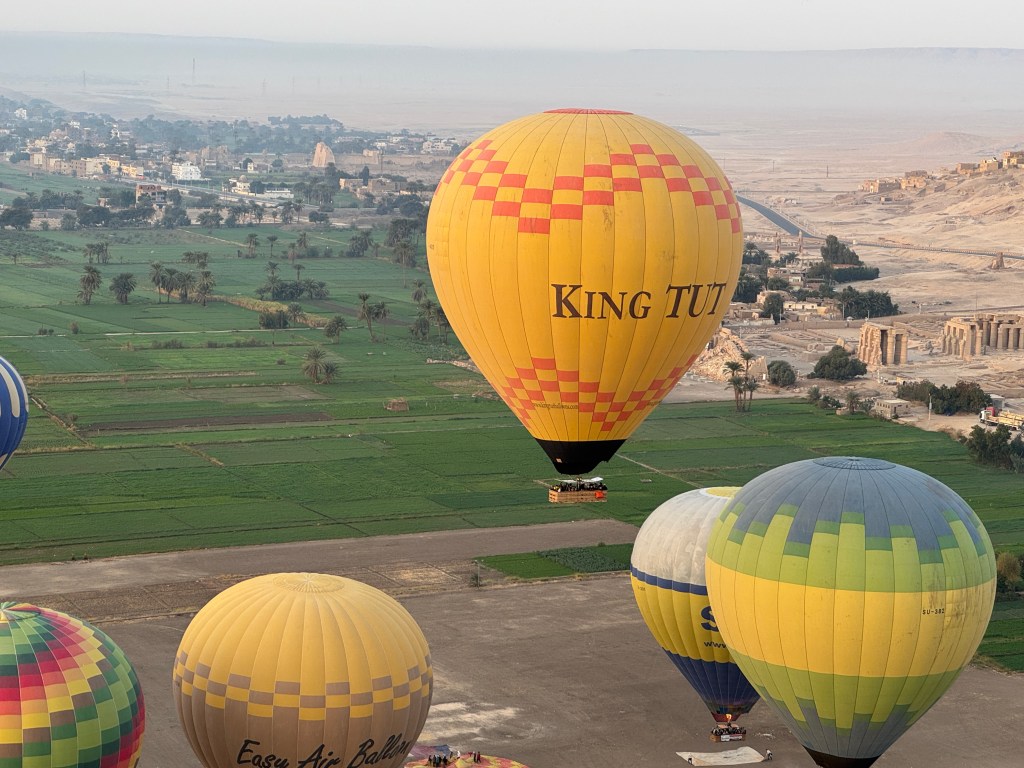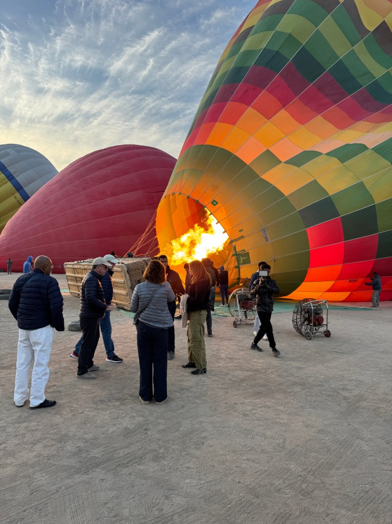 The following morning, I got up early to take a hot air balloon ride. I had never done this before – I’m not wild about heights but I figured that if I didn’t take advantage of this opportunity at this time, when would I ever do it? So I did. It was fantastic. I loved watching the balloon be inflated, and then silently floating above the Temple of Hatshepsut and other sites. Memorable.