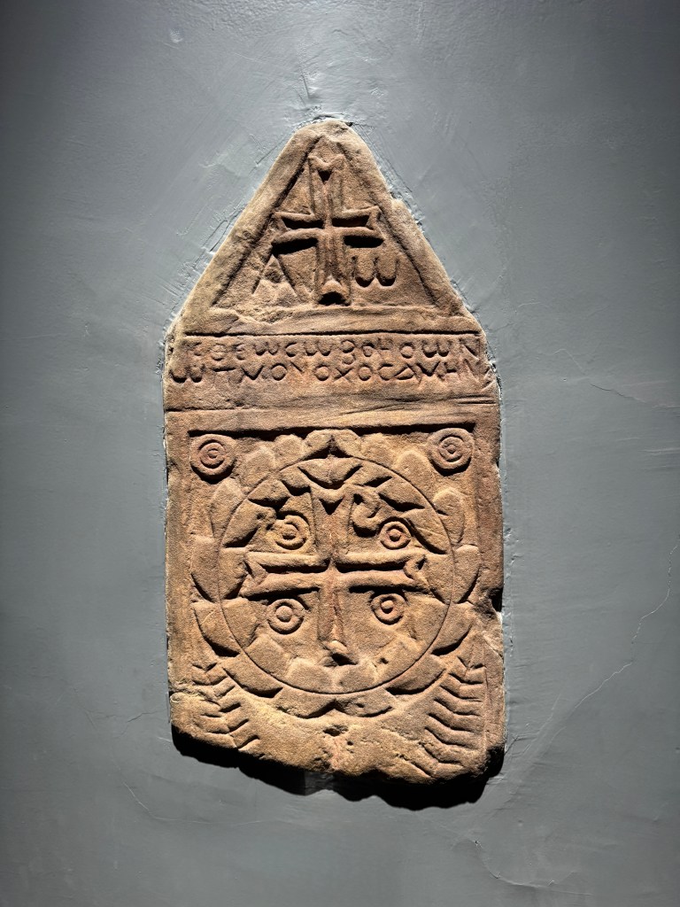 Coptic grave stone (6 – 7 century AD), Luxor Museum. The inscription, in Greek, reads, “O Lord, help your servant Taimios.”