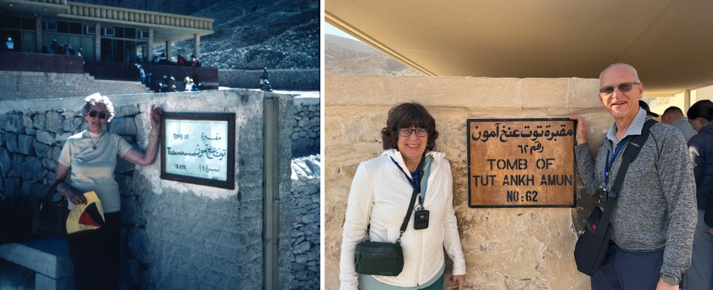 Virginia York Spangler and Douglas and Patricia Yeo at the entrance to there tomb of Tutankhamun, Valley of the Kings (1976 and 2026)