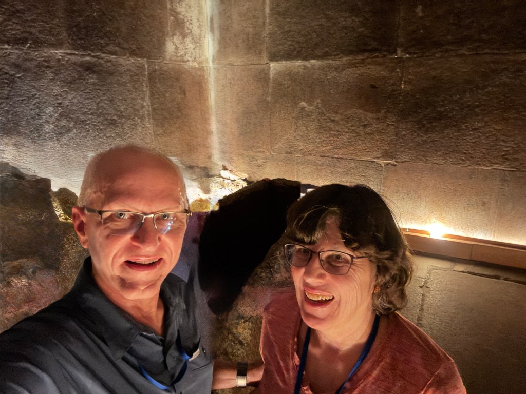 Douglas and Patricia Yeo inside the Great Pyramid of Khufu, Giza