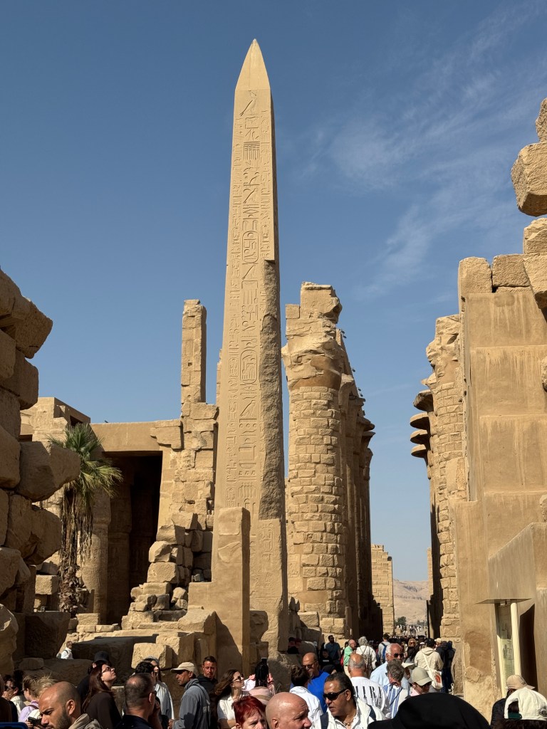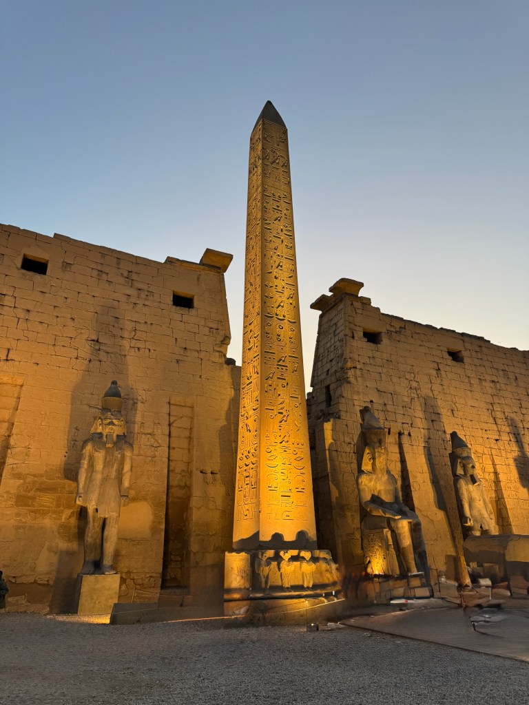 Luxor Temple used to have two obelisks, one on either side of the entrance to the temple. In August 2025, Pat and I traveled to Paris to celebrate our 50th wedding anniversary and saw the other Luxor obelisk, erected at Place de la Concorde, the site of the guillotine used during the French Revolution. It was given to France in 1830 by Muhammad Ali Pashar and installed in 1836.