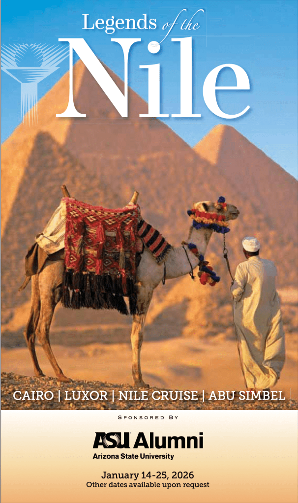 In fall of 2025, I received a brochure from Arizona State University alumni travel. I didn’t graduate from ASU but from 2012–2016, I was ASU’s full-time Professor of Trombone. Those were wonderful years of teaching with engaged, talented students, and working with superb colleagues. I still have a courtesy affiliation with ASU and as a result, I receive mailings from the University from time to time. Like a brochure about a tour of Egypt, “Legends of the Nile,” with AHI Travel.