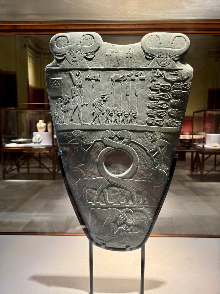 The museum’s collection included one of the most important part of Egypt’s history, the Narmer palette, showing Narmer, the first King of a united (upper and lower) Egypt, dating from about 3200 BC.