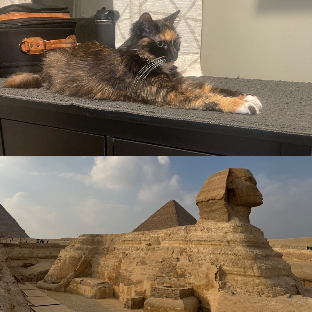 After we visited the Sphinx, I sent some photos to our daughters, who have cats. One of them sent us this composite, below. I guess cats are cats, even if they have a human head!